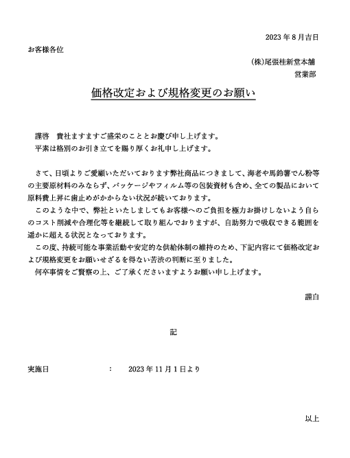 今後とも弊社の商品をご愛顧くださいますよう